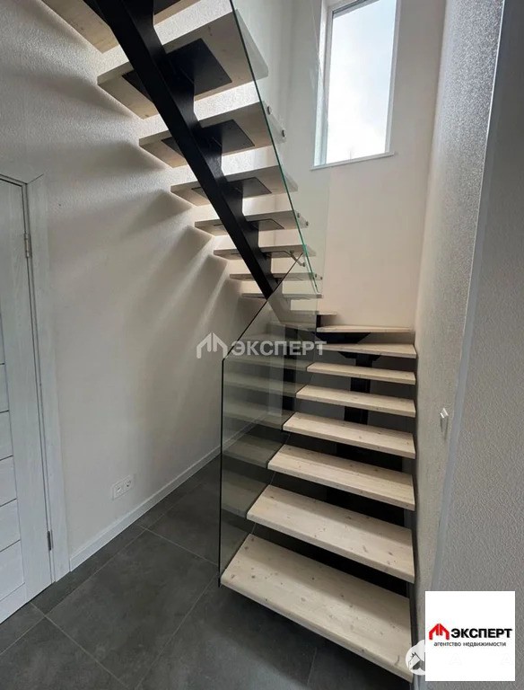 id539281 В продаже новый современный дом в хорошем районе города. Дом двухэтажный 118, 5 кв.м. из пеноблоков, отделан декоративной штукатуркой, фундамент - плита. Все коммуникации заведены в дом: свет 15 кВт, газ, скважина, септик. На первом этаже большая кухня-гостиная, бойлерная, спальня, санузел. На втором - 3 полноценные спальни и санузел. В доме выполнена чистовая отделка с использованием высококачественных материалов, на первом этаже теплый пол, на втором установлены радиаторы. Ухоженный участок 8 соток, сухой, ровный, правильной формы.