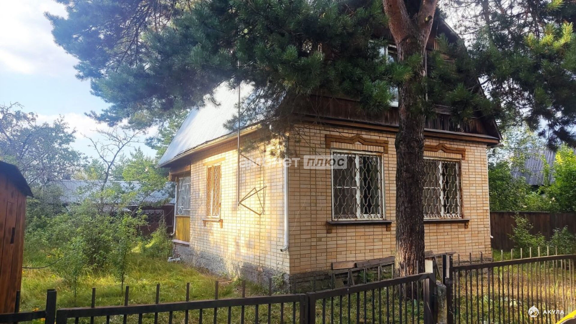Кирпичный дом 65 кв. м., толщина стен в три кирпича. Капитальный фундамент. 1 этаж несколько маленьких комнат. 2 этаж мансарда. Отопление электрокотел. Имеется погреб. Участок 1200 кв. м. На участке расположены: домик для хранения инвентаря, летняя кухня, душевая, туалет, баня, гараж. Имеется летний водопровод, что не маловажно на даче. В соседних СНТ такого счастья нет!