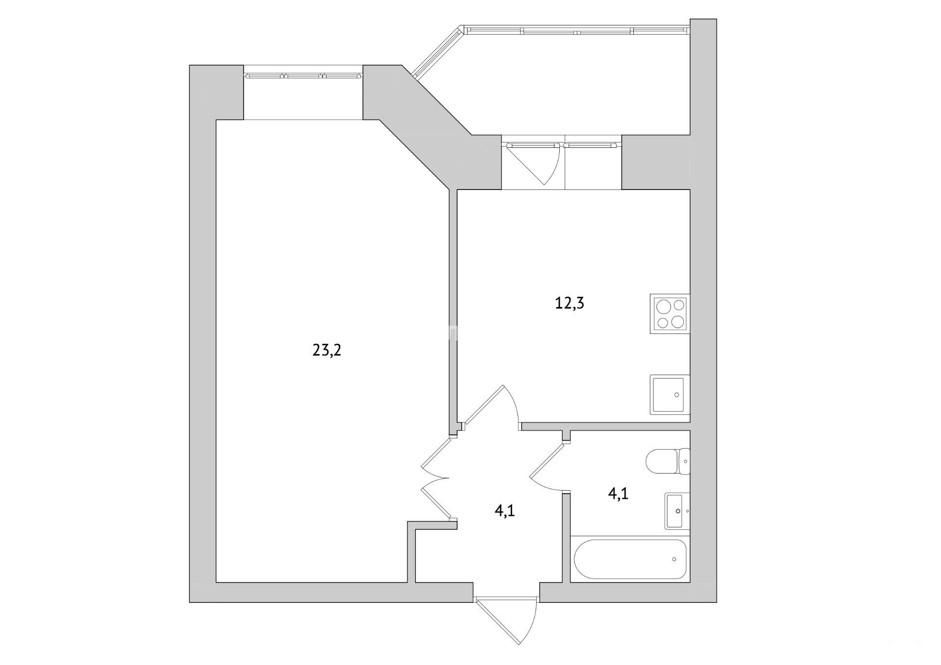 - 44 м²