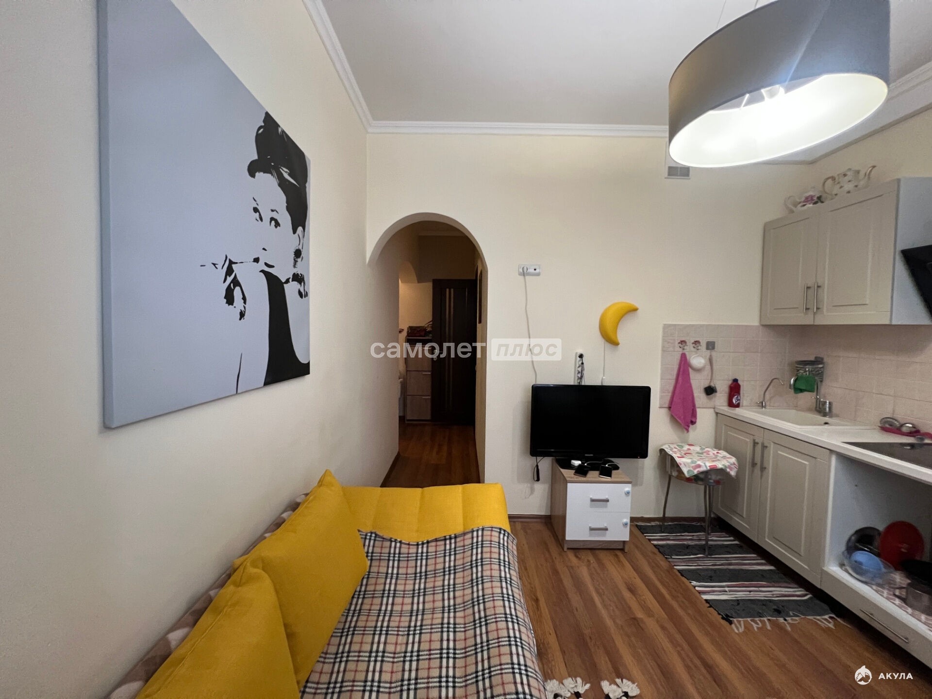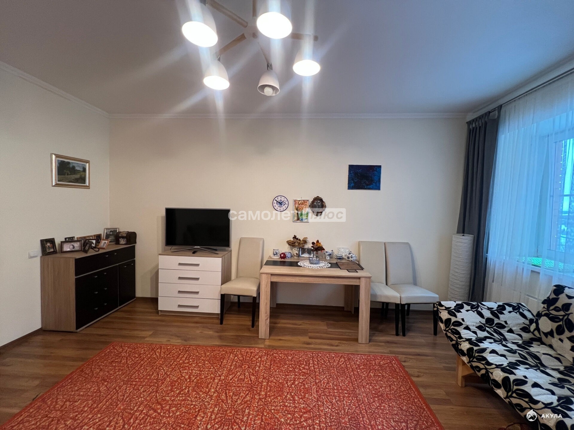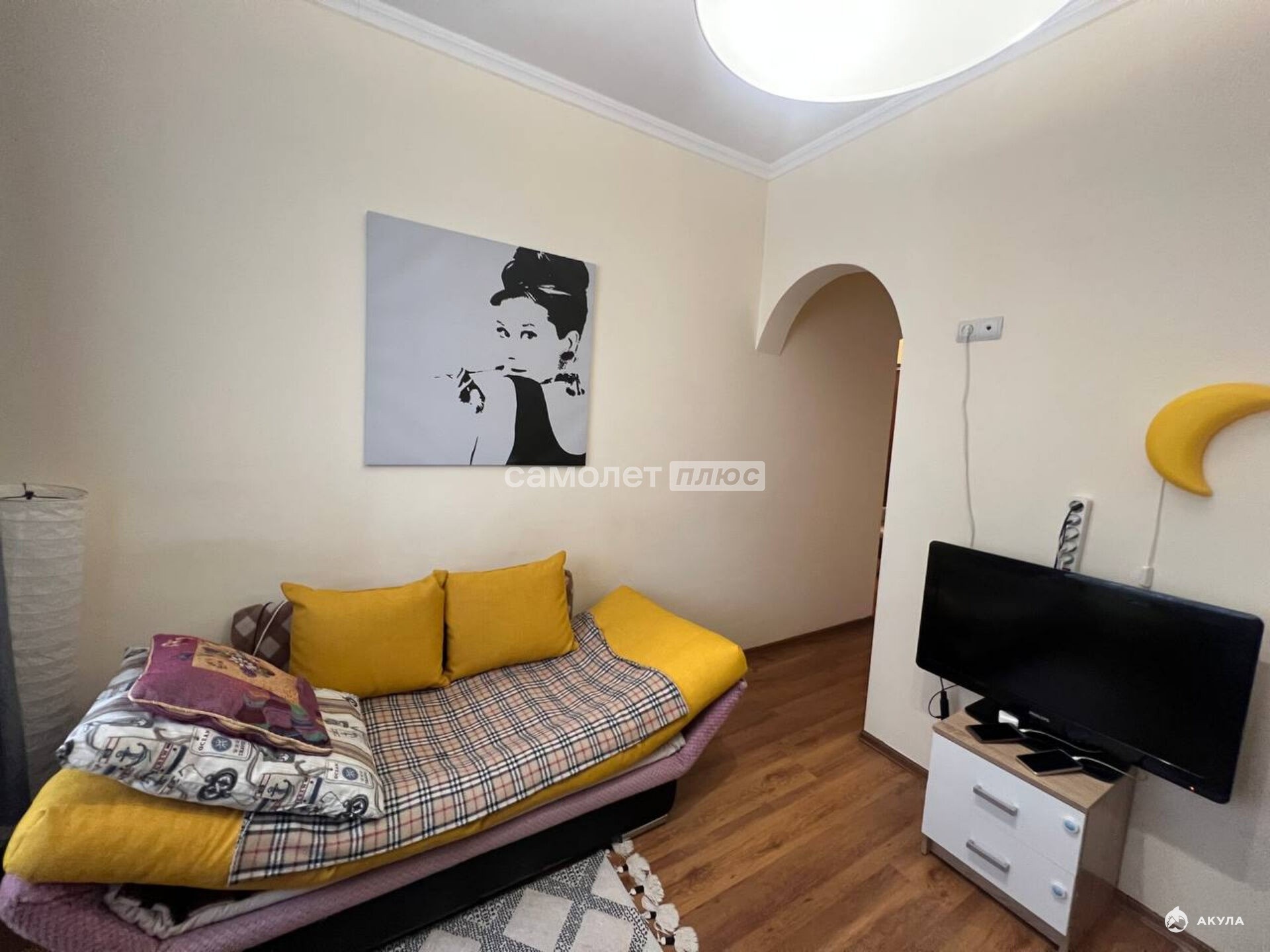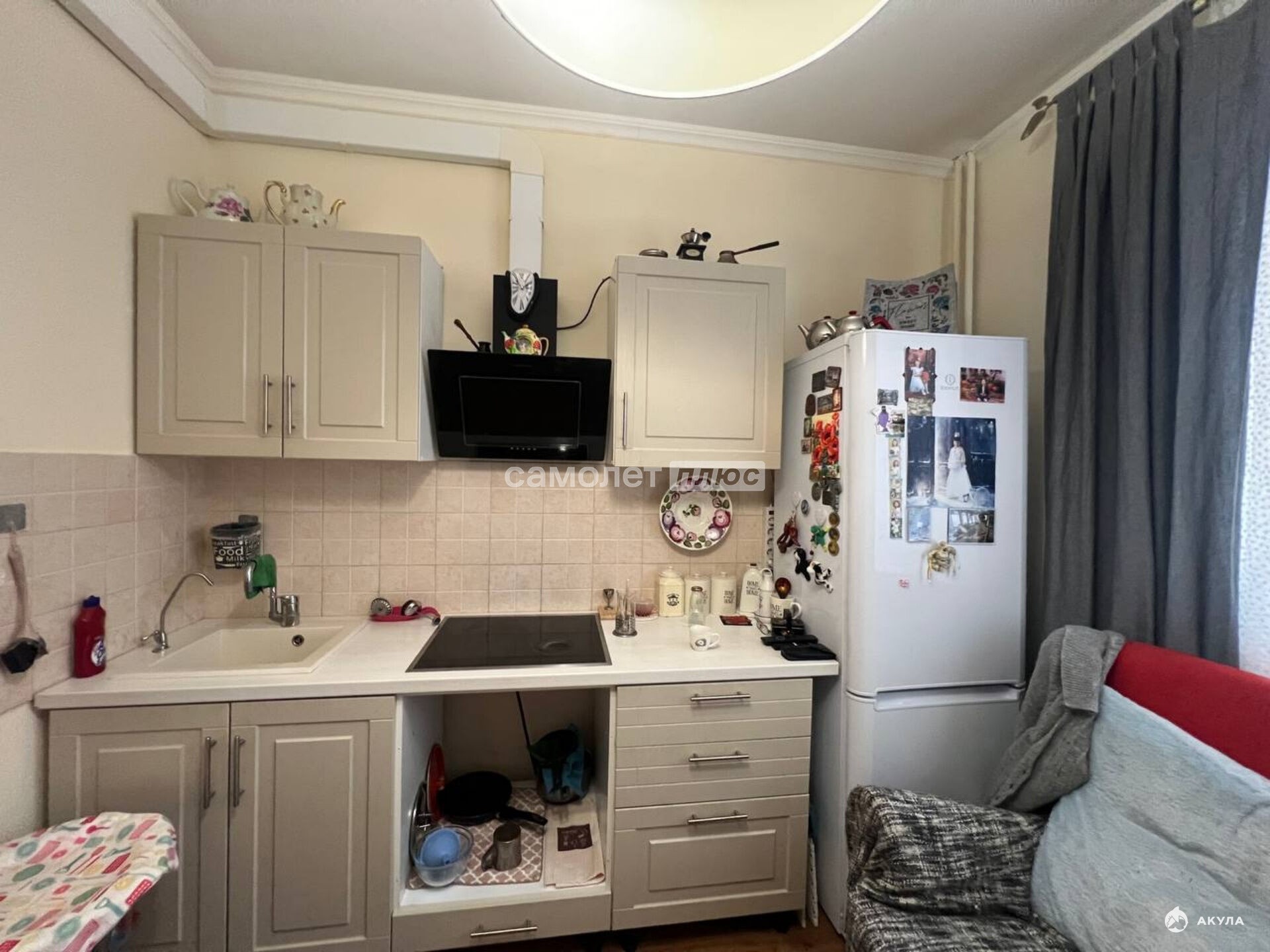 В квартире выполнен качественный ремонт: стены оформлены в светлых тонах, на полу ламинат, заменены окна, установлен кондиционер. Покупателю остается вместительный шкаф, удобный диван, кухонный гарнитур и стиральная машинка. Не угловая.