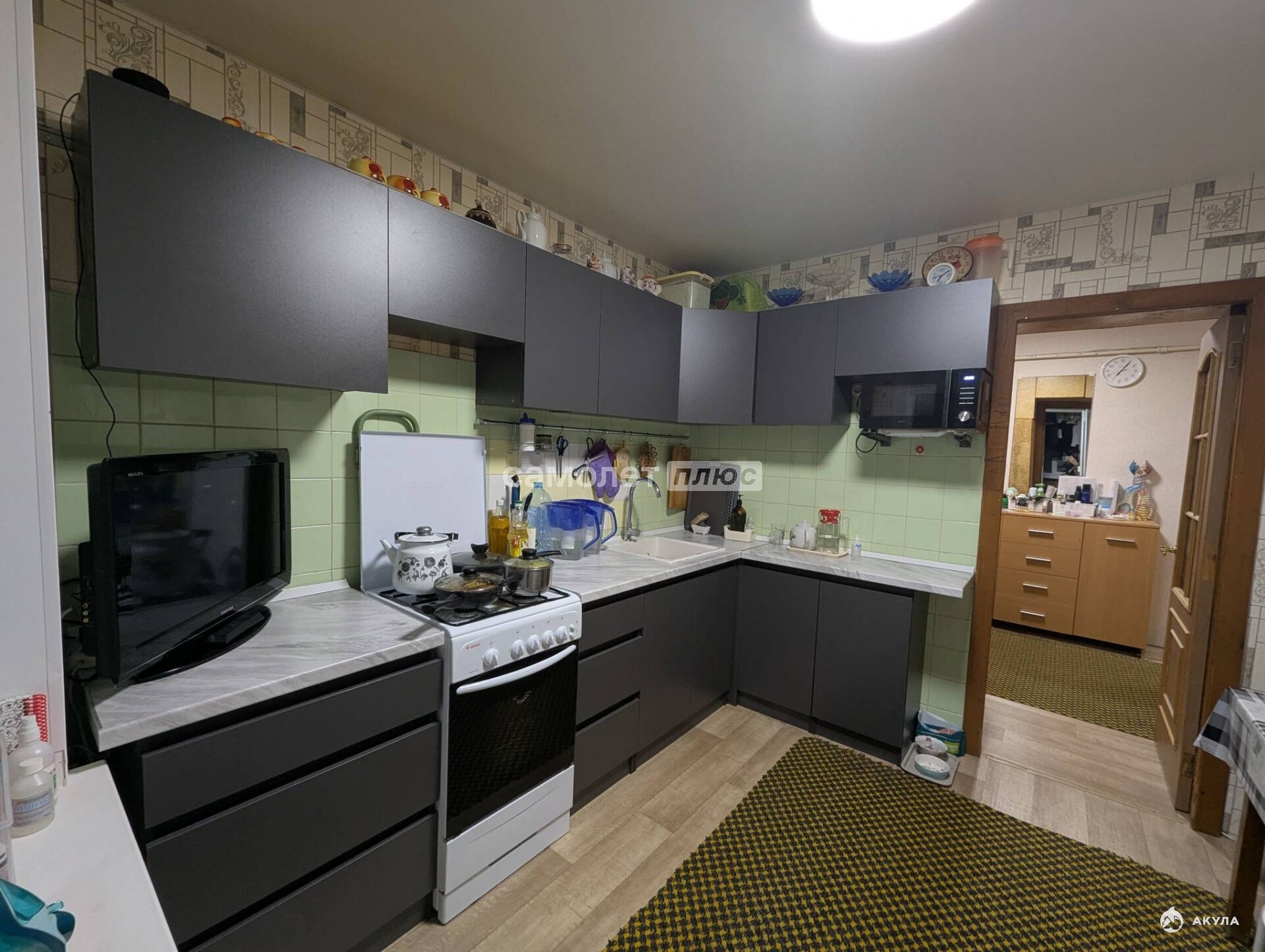 · Особенности: Раздельный санузел, большой квадратный холл. В квартире остаётся новый кухонный гарнитур, шкаф-купе в комнате.